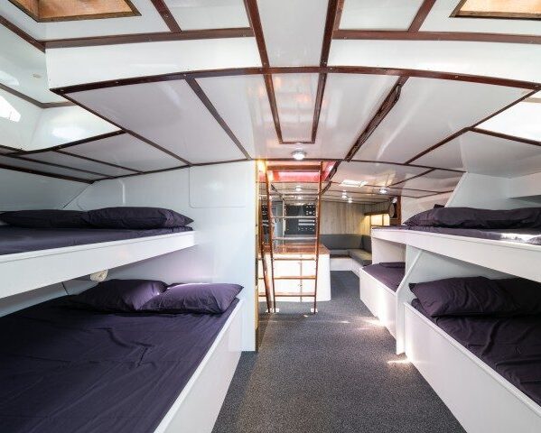 Evenings are spent in peaceful bays where you can relax, watch the sunset, and enjoy dinner and drinks. The fun, social vibe continues as you swap stories with fellow travelers before heading to your spacious cabin for a good night’s rest. Wake up to breakfast and another day of adventure!