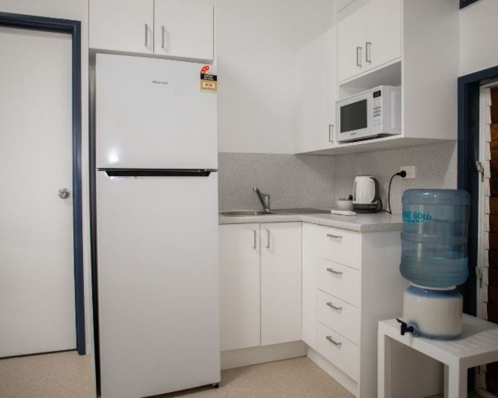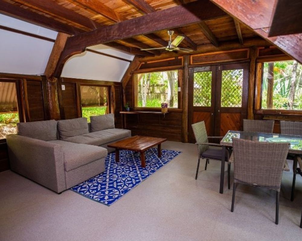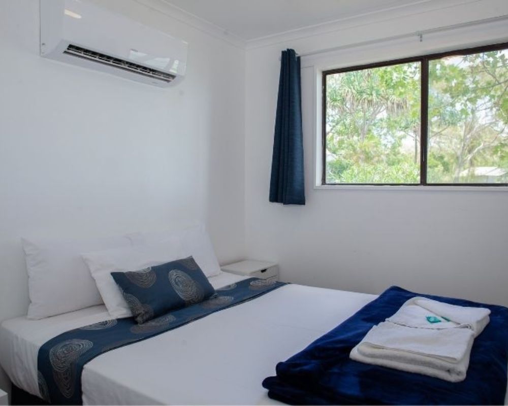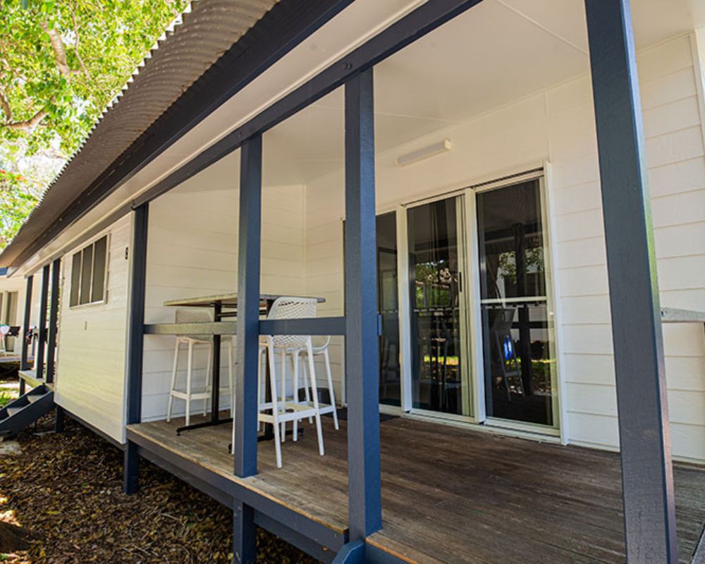 Island Cabins provide comfortable, air-conditioned accommodation with basic self-catering facilities, including a full-sized fridge-freezer, toaster, kettle, microwave, electric frypan, and dining area. Each cabin features a private ensuite with shower, toilet, and basin, plus bath towels for your stay (please bring your own beach towel). Toiletries are not provided, except for a cake of soap.
