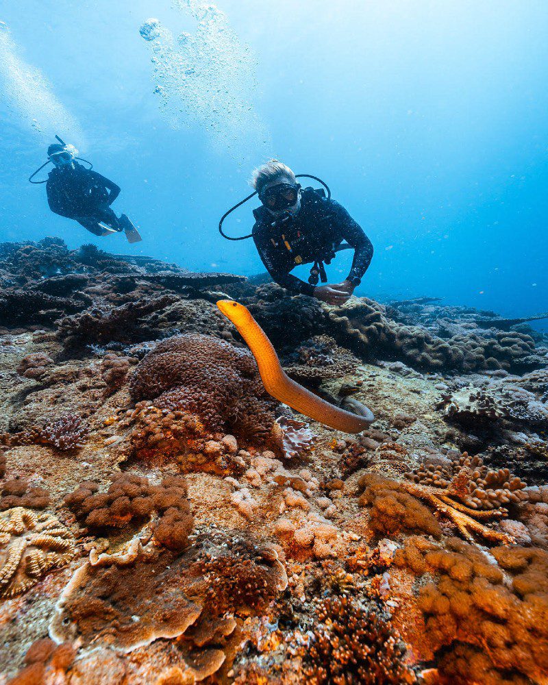 • Relaxed snorkelling and diving – Swim alongside turtles, vibrant coral gardens, and schools of tropical fish just off the shore or on guided reef dives.